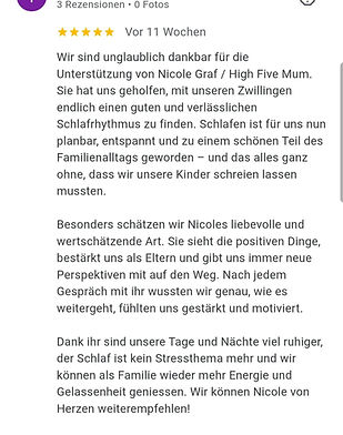 Unsere jüngste Tochter hat 9 Monate lang von abends um 23.00 Uhr bis morgens um 5.00 Uhr geweint, war hellwach und niemand wusste wieso. Irgendwann, hat uns der Schlafmangel derart zugesetzt, dass wir uns dazu entschieden haben, uns einen Profi an die Seite zu nehmen und das war die beste Entscheidung ever!